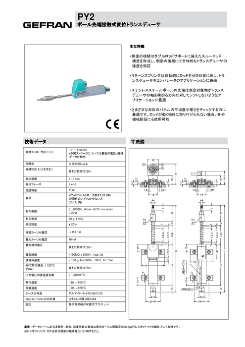 ・ステンレススチールボールの先端は、測定対象物がトランスデューサの軸を